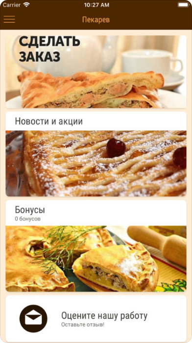 Мобильное приложение частной пекарни «Пекарев» - это самый легкий и удобный способ заказа пирогов с пылу с жару и свежих тортов.